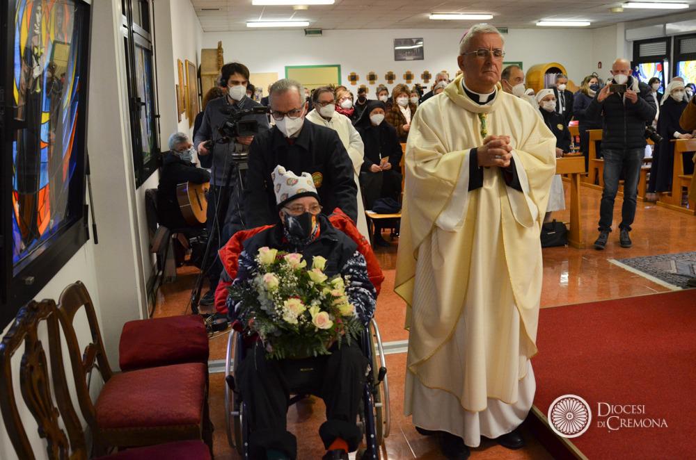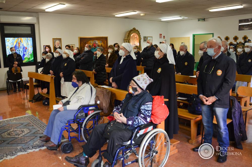 Dame e barellieri dell’Unitalsi hanno accompagnato i malati nelle prime file della cappella dell’ospedale Oglio Po di Vicomoscano (Casalmaggiore); con gli schermi nei corridoi e attraverso la diretta televisiva nelle stanze dei reparti, operatori sanitari e malati hanno partecipato alla Messa presieduta dal Vescovo Antonio Napolioni.