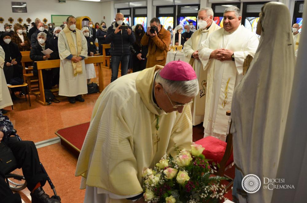 Prima della benedizione il Vescovo ha reso omaggio alla statua della Vergine Immacolata, pregando con la preghiera della Giornata del Malato per l’affidamento in particolare di ammalati, infermi, persone sole e anziane e tutti gli operatori sanitari.