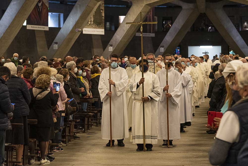 La Giornata di Caravaggio si è svolta in occasione del consueto incontro della Conferenza episcopale lombarda ed è stata promossa da Unitalsi Lombarda e Cel, con la collaborazione organizzativa della Fondazione Opera Aiuto Fraterno. Dopo l’accoglienza e la preparazione alla liturgia, la processione dei sacerdoti presenti ha introdotto alla celebrazione eucaristica nel Santuario di Santa Maria del Fonte, presieduta dall’Arcivescovo di Milano, monsignor Mario Delpini, e dagli altri Vescovi lombardi. Su espressa indicazione di monsignor Delpini, la memoria nella preghiera è stata rivolta a tutti i sacerdoti lombardi vittime della pandemia: su quasi 300 presbiteri morti in Italia, ben 92 erano originari della nostra regione.